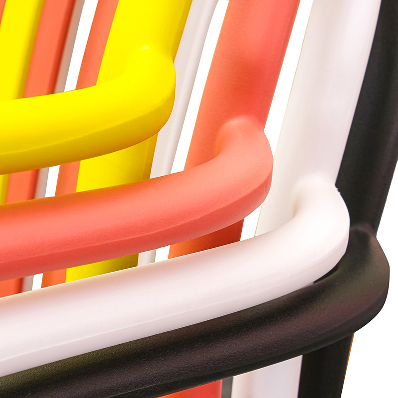 Larger contour shell, wider backrest, and elegantly curved super heavy-duty legs.